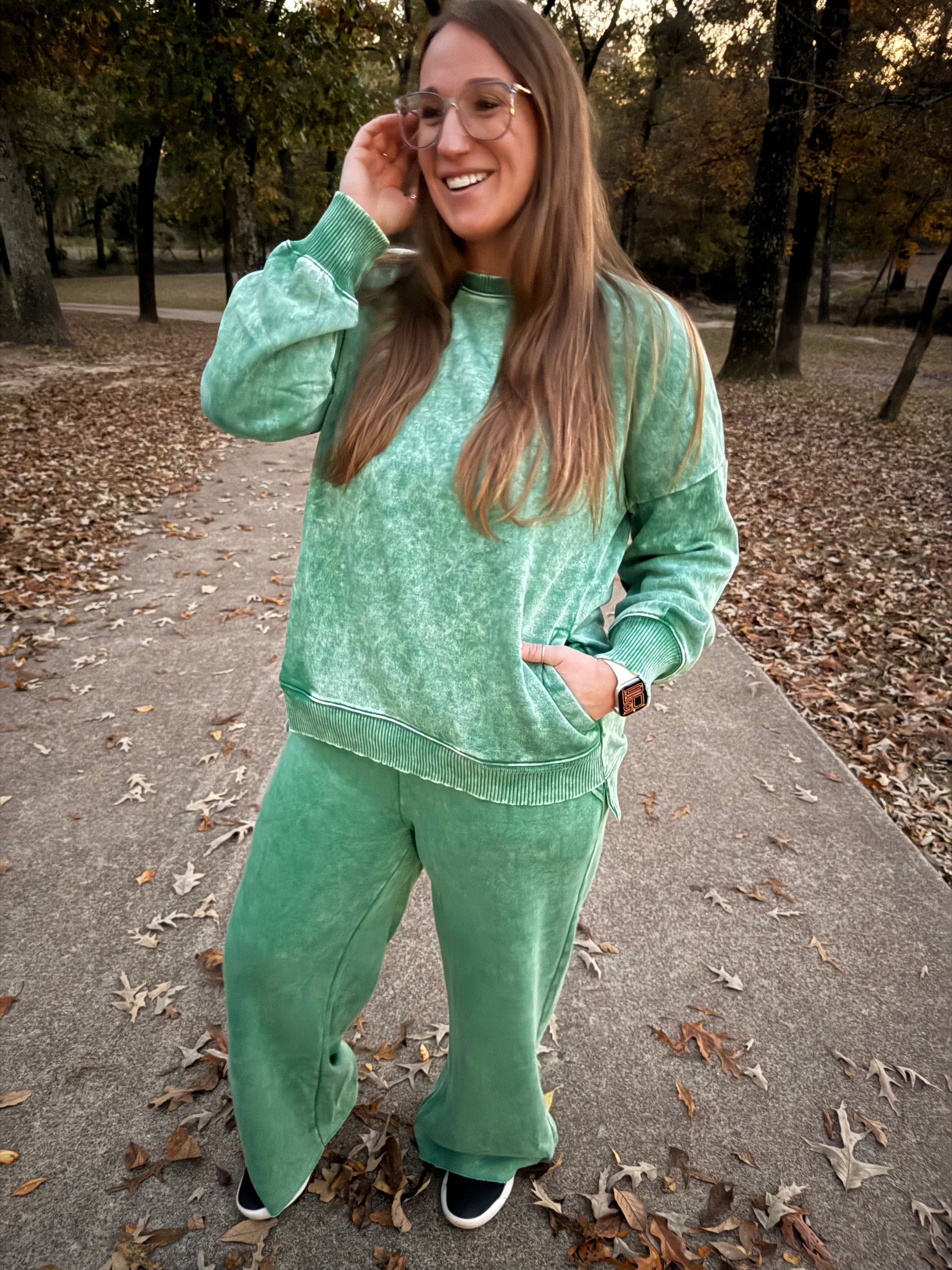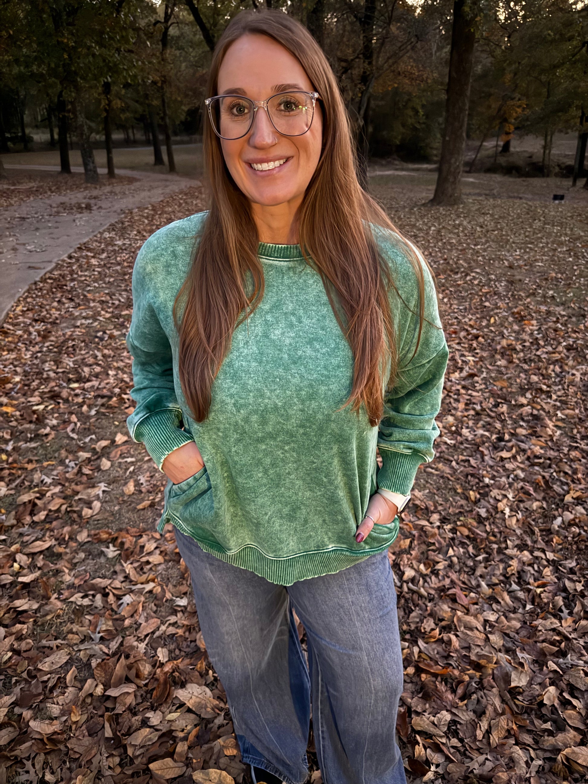 Green acid wash pullover